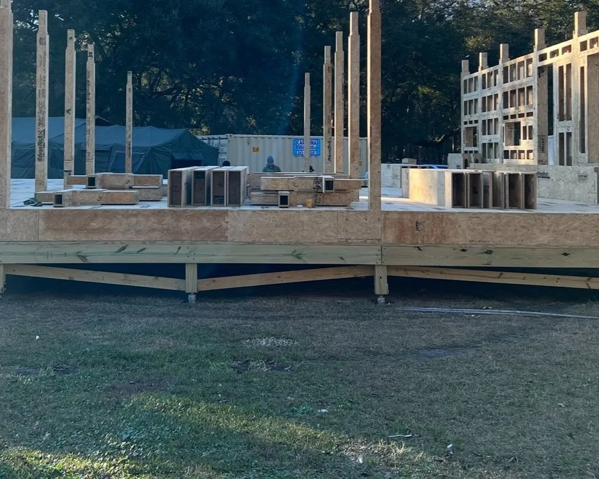 The complete kit of components are delivered to the job site and can be rapidly assembled by teams without traditional construction skills.